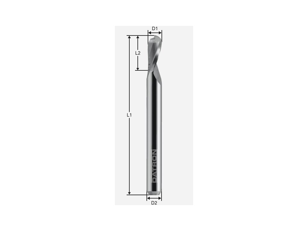 Jednobřitá kulová fréza; D1=3,0 / D2=6,0 / R=1,5 / L1=50,0 / L2=8,0